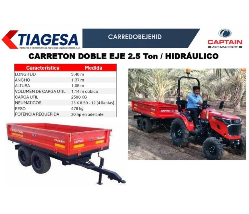 CARRETÓN DOBLE EJE 2.5 TON HIDRÁULICO