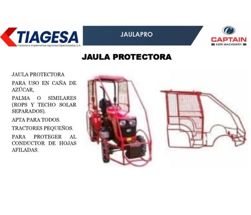 Está diseñada como un marco metálico reforzado, generalmente compuesto por varias piezas atornilladas, que crea una zona de protección alrededor del conductor. En los tractores CAPTAIN, este sistema viene homologado bajo normas internacionales (OECD/EEC) y se recomienda usar siempre junto con el cinturón de seguridad.