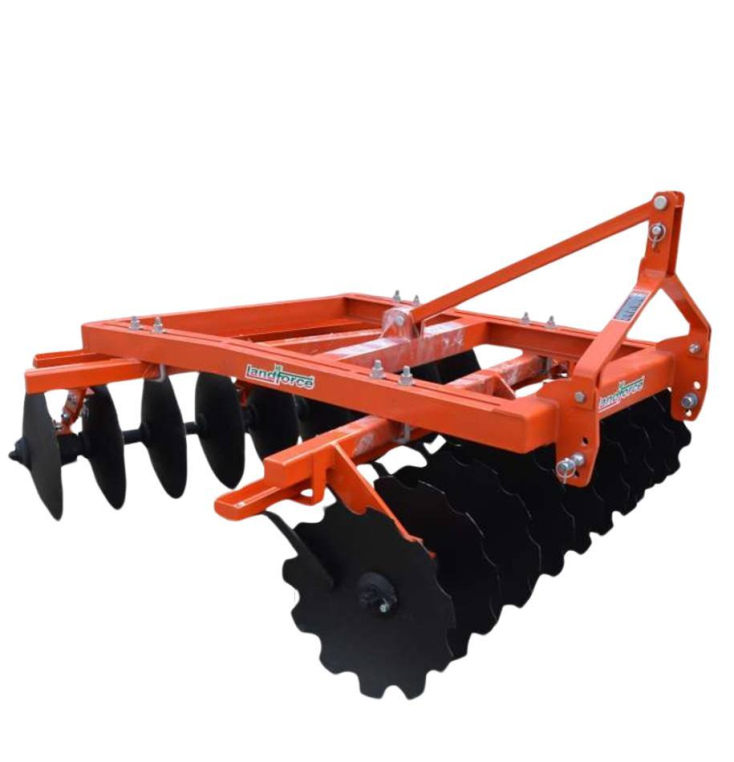 La rastra montada de 7x7 discos marca Land Force es una herramienta compacta pero poderosa, diseñada especialmente para pequeños y medianos productores que buscan una labranza eficiente sin necesidad de grandes tractores. Su sistema de montaje en tres puntos permite un acoplamiento rápido, práctico y seguro.